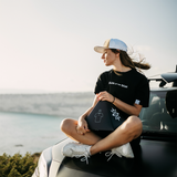 The T-shirt is made of a 100% cotton t-shirt — an embrace of comfort, while the cap, a fusion of minimalism and nature, carries the whisper of adventure in its cork elements.